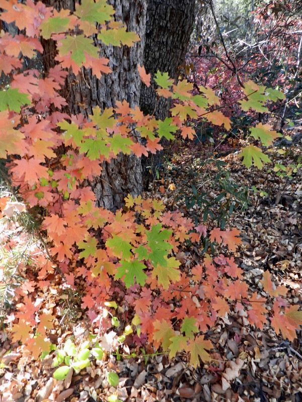 As we explore, we don’t see as full of a showing as the last trip, back in 2021. We speculate as we walk along. We’re looking for evidence that will tell us if we are too late, or too early. We find both spent bare branches and fresh green leaves. Perhaps some of the species last longer, or perhaps that frost last week accelerated the process. In the end, we know that tomorrow on the way to the end of this canyon trail, we will get what we get.