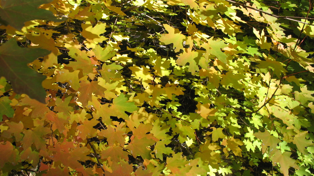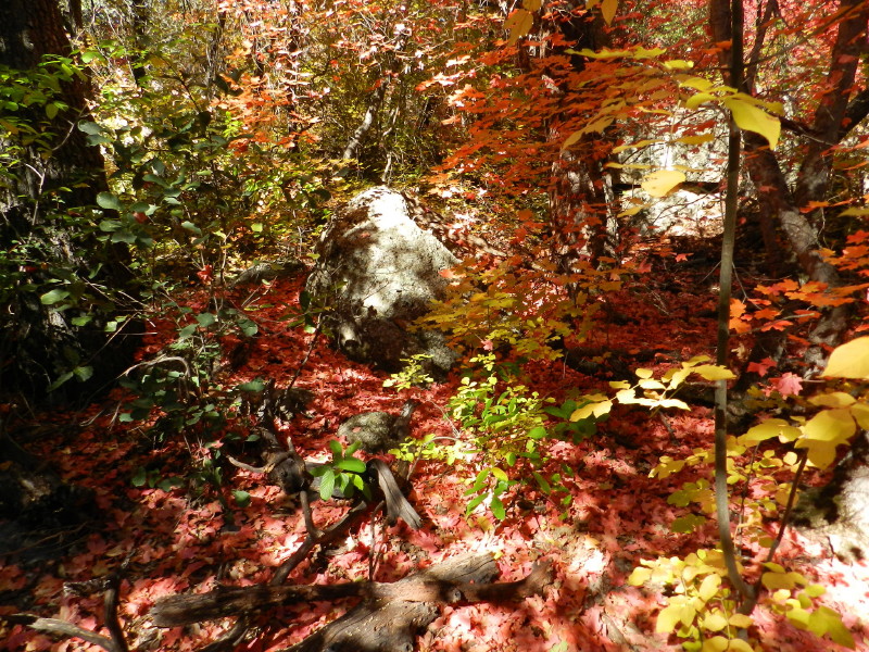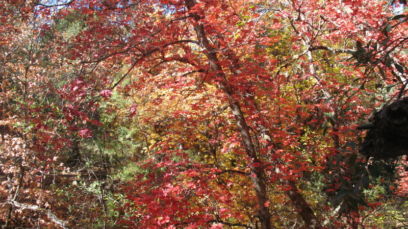 We have been speculating what causes the leaves to change, comparing the temperatures and rainfall during our trips here, wondering if the amount of rain has affected the foliage. We consider the hard freeze that hit this region a couple of weeks earlier and wiped out a friend’s organic crops. All of these are clues, as we attempt to understand the complexity of nature. Then, any of such intellectual thoughts about the topic get washed away periodically by a tidal wave of the shear stunning gorgeousness of something in the moment. Along the way, we are bowled over.