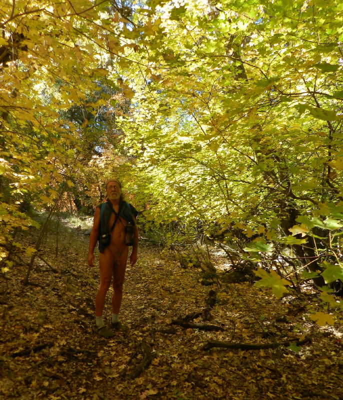 We have compromised enough body freedom, by dressing in the minimum. The rest of the other garments will stay stuffed, until we get home to the camp. Torso and extremities blanketed, like the fallen leaves on the ground.