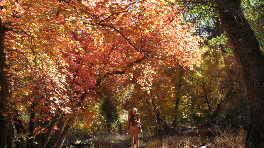 “Stunning, gorgeous,” such words are all that are heard, other than the errant bird calls, the swish of our steps in the fallen leaves and the shutters of cameras snapping.