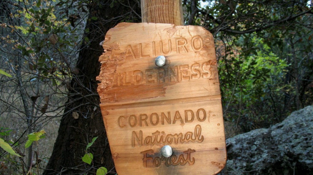 There is a sign labeling the beginning of the designated Wilderness Area, a land where all hands are off and it is left wholly natural.