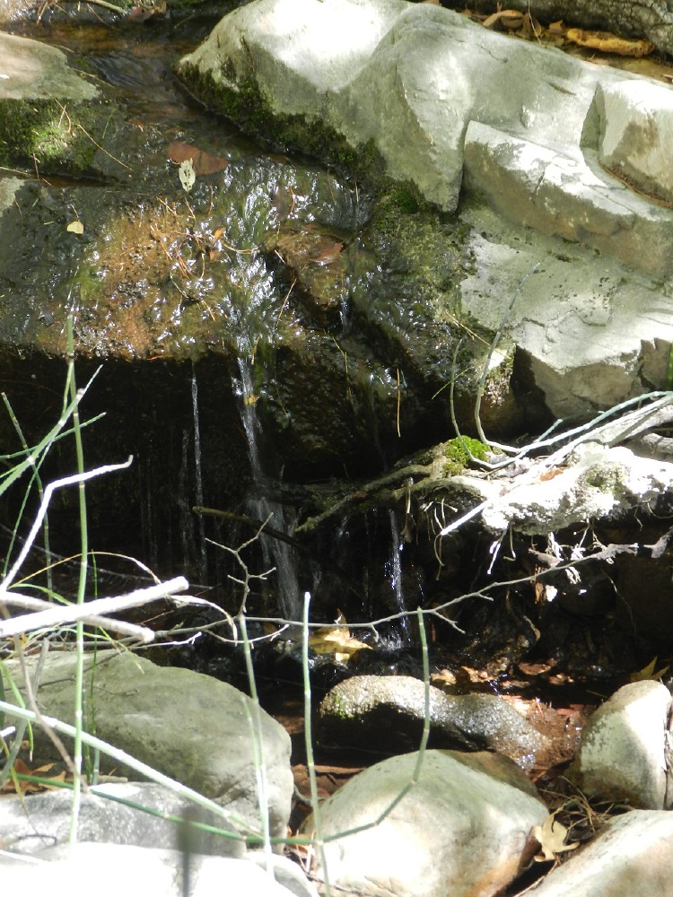 A lone sycamore leaf falls. We hear just the sound of the brook falling over, through and off rocks.