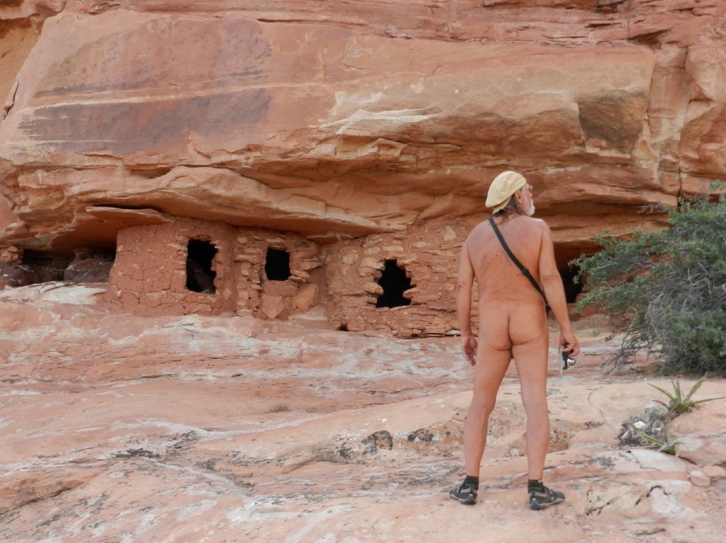 We find that clothed people get hot easier than we nude people. Often, we were left even more to ourselves as temperatures rose. Even so, I can tell you that also in the cool remote forested mountains, we saw no other human beings for four days. I must warn that in Utah, there are laws about intending to have certain body parts seen by those few who might object, but one of those silly people has to be there to see.