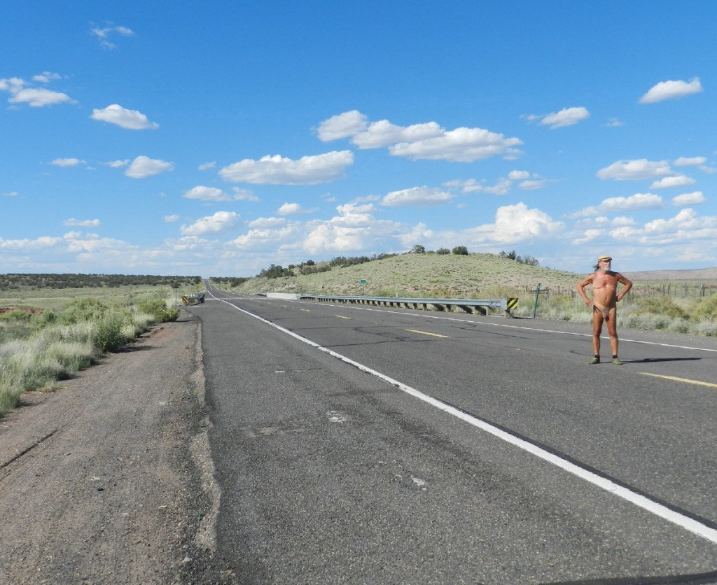 Still, it is wonderful to pull off of the absolutely straight two lane highway, turn off the motor and stand naked. The roar of the motor and the blast of blues jams coming out of speakers, are replaced by… Nothing.