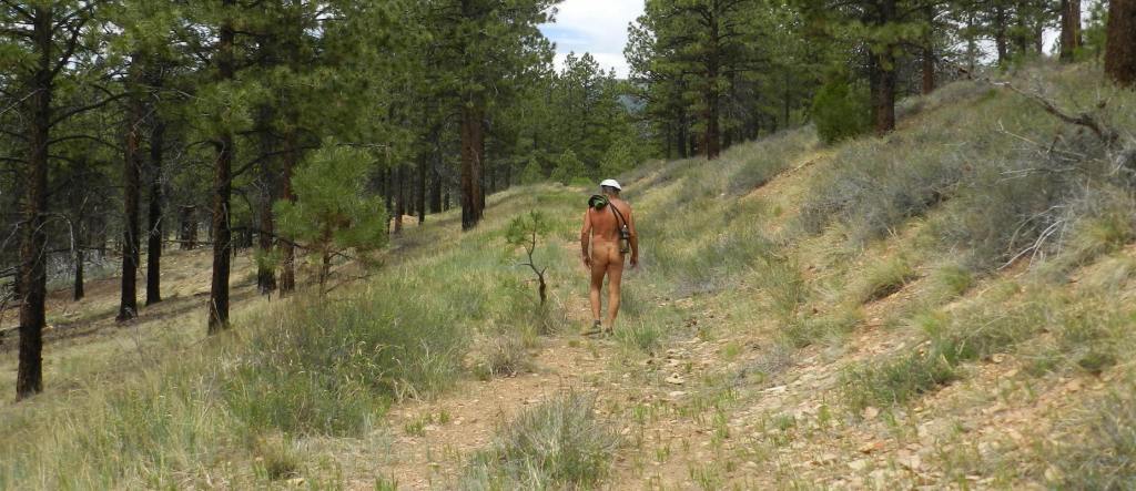 We take nothing, expecting to see no one. DF has a small towel to comfort her shoulder strap, maybe to sit down on at some point. We desert rats always have some water, not knowing how far our adventure may continue. Stripped down, there is an additional sense of freedom and sensuality.
