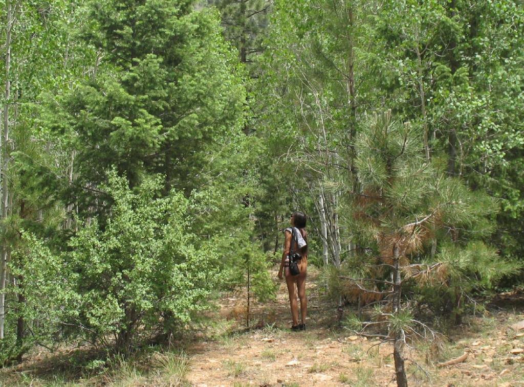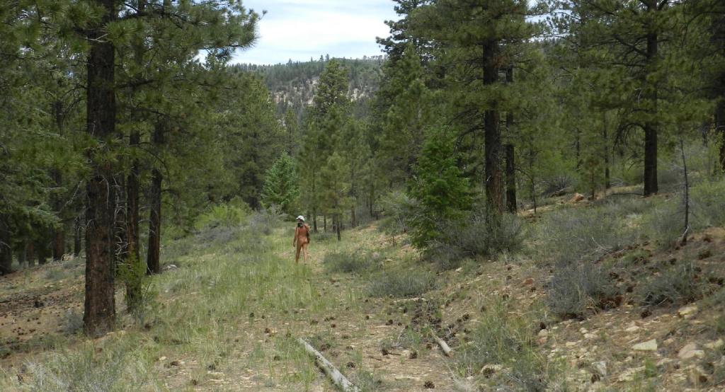 Considering the smoke, we decide to take it easy. Holding hands some more, as we casually walk naked together along this mountain forest trail, there is the bond with the natural and a bonding in our nature. Everything suits the other. We return to camp and sit and read.