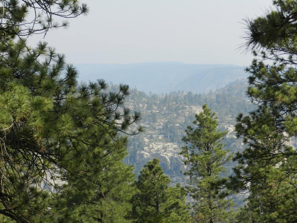 As we look out between the trees at the vista point, we are surprised at a fog of smoke. It can be tasted, the expanse of the Hell’s Backbone Wilderness, dozens of miles in the distance, is gone from sight. There has been more destruction today from the distant fire that chased us from the lowlands. It is probably too difficult to fight, perhaps climbing in cliffs and the very rough primitive terrain. Out there, the Forest Service had determined that there are no buildings to protect and just left it to burn as nature intends. This fire is however, out of season, man-made and unnatural in unusual drought. It is more just something destructive, polluting and a sad occurrence.
