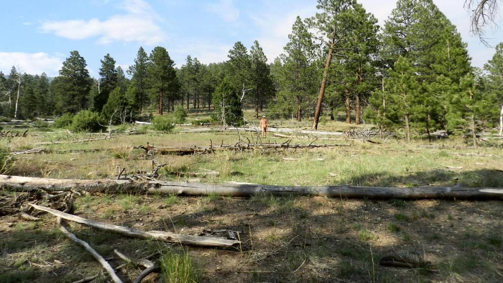 After a nap, we are committed to retrace and investigate the field of fallen aspen tree trunks that we saw earlier.