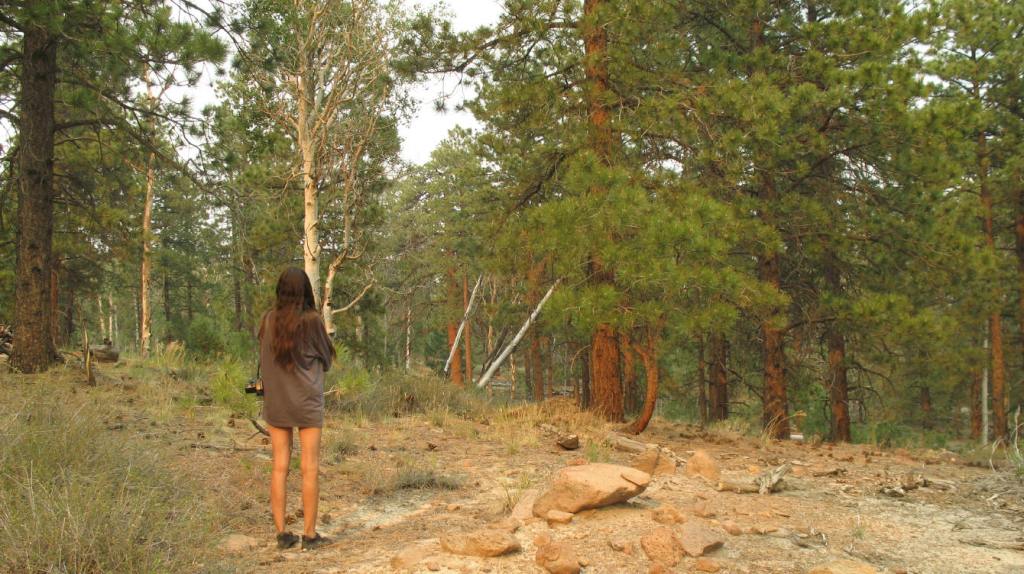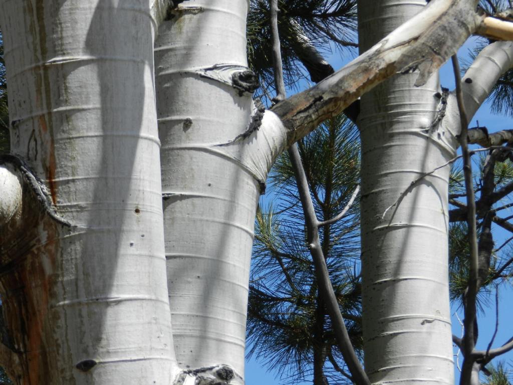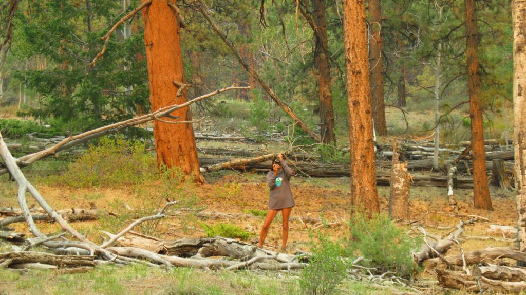 DF takes a break to draw aspen trees in her book with pencil.