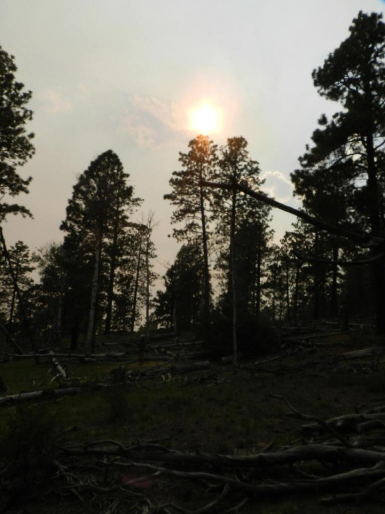 By the time of the arrival for the actual sunset, the winds have shifted. The ominous trail of smoke is again drifting across the view in the south.