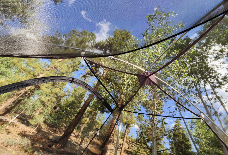 Friday June 20th 2025 opens up with my eye lids.  I find myself back in the mountain forest under blue skies. Last night’s smell of smoke is gone, replaced by a sense of clarity. All is seen through the net tent, as the sun is getting us up, out and about, acting like a parent sending us off to school. We conked out last night early. A glance at a cell phone tells us that we have slept for more than 12 hours. “How’d we do that?”