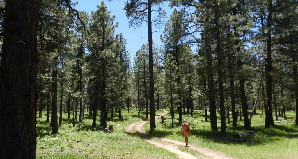 Another restful day, we find that the trail across the road from us is a road to another look out. We walk down it maybe halfway, just to enjoy the morning, carrying nothing, unrestricted, unscripted. Even the flip flop shoes come off at a point in the road. We’ve decided to walk it all…later.